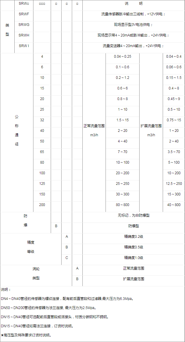 SRW系列渦輪流量計是由渦輪流量傳感器與顯示儀表組成,是本廠采用國外先進技術生產制造的,是液體計量最理想的流量計之一。流量計具有結構簡單、精確度高、安裝維修使用方便等特點。該產品廣泛用于石油、化工、冶金、供水、造紙、環(huán)保、食品等領域,適用于測量封閉管道中與不銹鋼1Cr18Ni9Ti、2Cr13及剛玉Al2O3、硬質合金不起腐蝕作用,且無纖維、顆粒等雜質的液體。若與具有特殊功能的顯示儀表配套使用,可以進行自動定量控制、超量報警等用途。