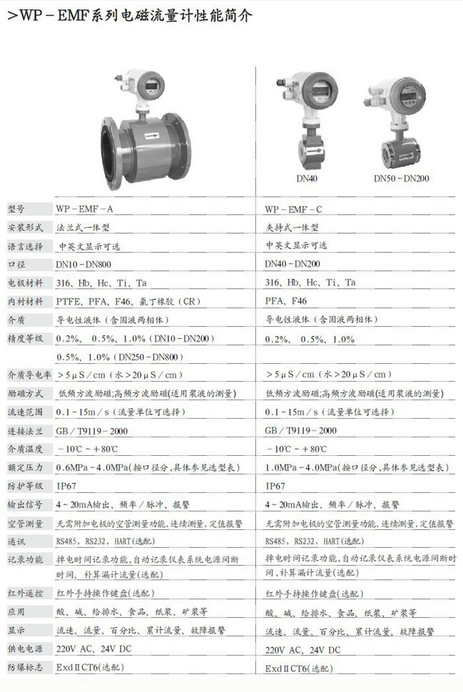 WP-EMF-A-B法蘭式電磁流量計