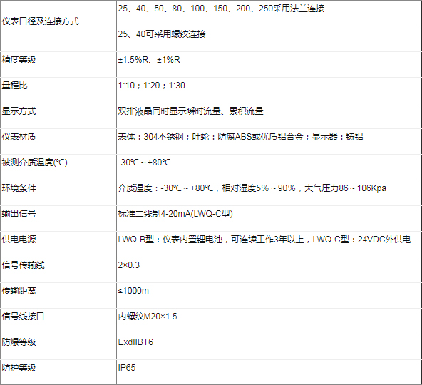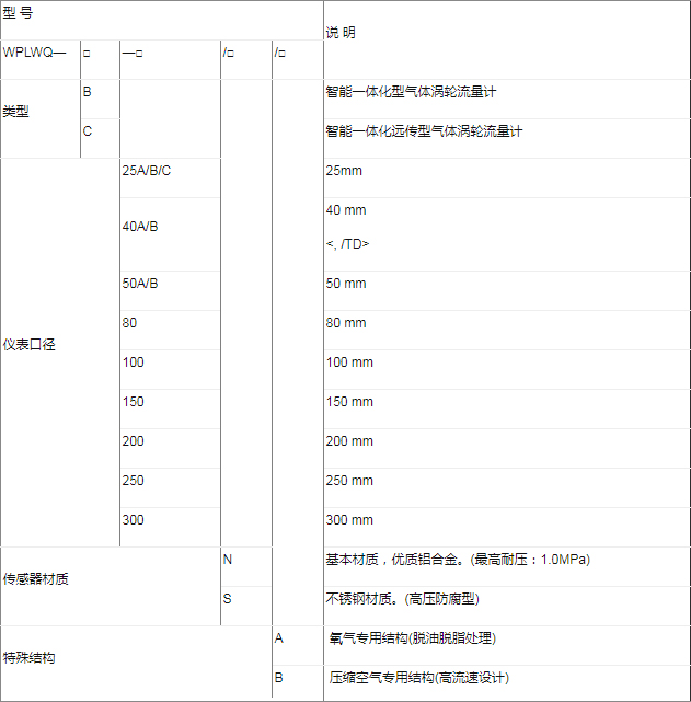 該類渦輪流量計按照供電方式、是否具備遠傳信號輸出可分為LWQ-□B型和LWQ-□C型。