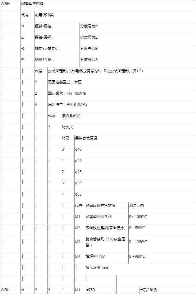 ★ 耐磨熱電偶選型表
