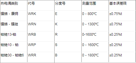 B型、S型、K型、E型 主要技術(shù)參數(shù)