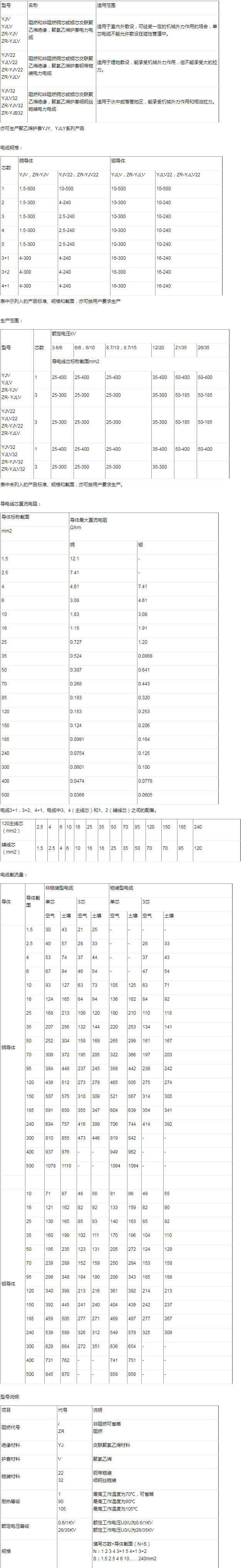 例1:0.6/1KV銅芯交聯(lián)聚乙烯絕緣聚氯乙烯護(hù)套、3芯120mm2交聯(lián)電力電纜表示為:YJV0.6/1KV 3×120mm