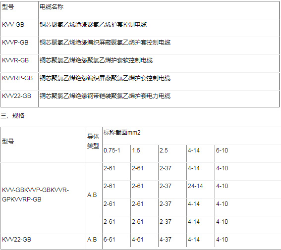 注:(1)表中型號(hào)可提供工作溫度90℃、105℃的控制電纜。