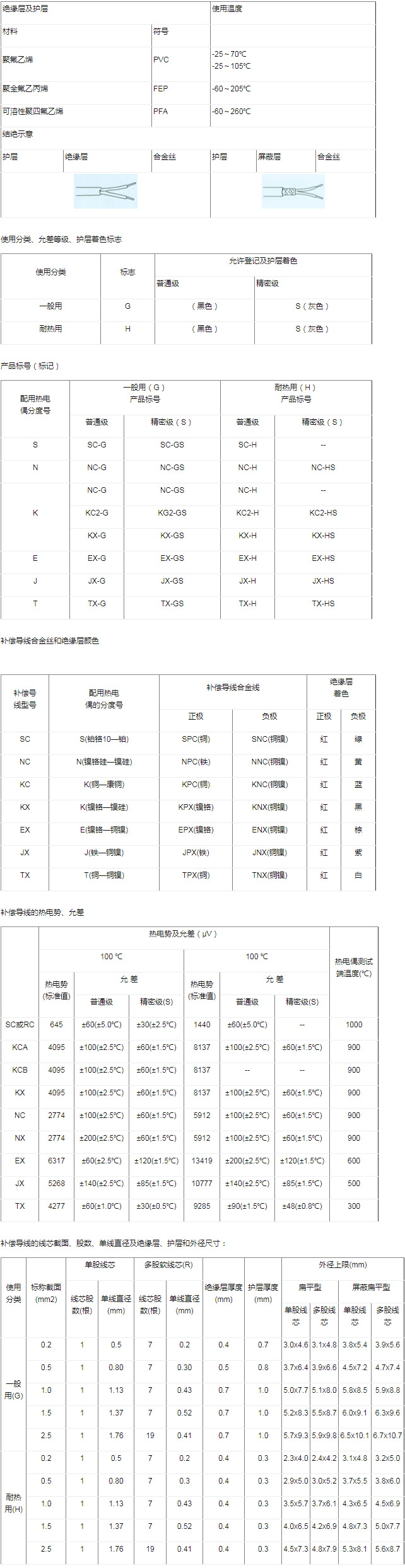 補償導線型號按產(chǎn)品的品種劃分為SC、KC、KX、EX、JX、TX、NC